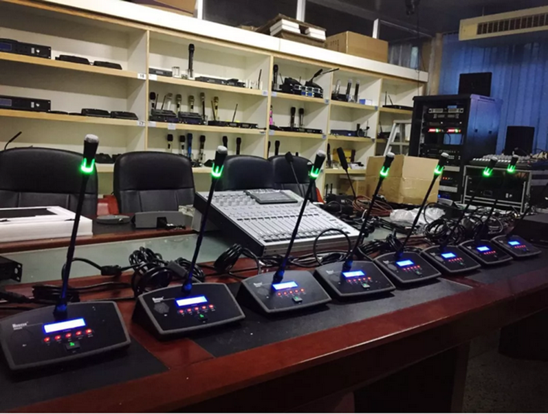 ?討論發(fā)言:可實現(xiàn)主席優(yōu)先發(fā)言權(quán),可以隨時中斷代表發(fā)言;可實現(xiàn)當(dāng)打開話筒單元數(shù)達(dá)到設(shè)定最多話筒單元數(shù)時,下一話筒打開時,系統(tǒng)將自動關(guān)閉最先打開的代表話筒單元;可實現(xiàn)限定發(fā)言總?cè)藬?shù),當(dāng)話筒打開超出設(shè)定范圍時,其它話筒均不能打開。